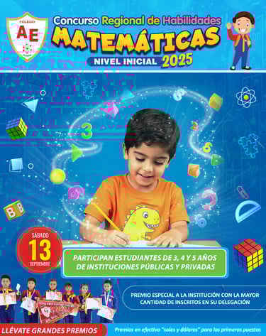 Inscribe a tu niño de 3, 4 o 5 años en el Concurso de Matemáticas. Hoy aprende a resolver problemas numéricos, mañana sabrá enfrentar los de la vida. Despierta su talento, reta su mente y motiva su espíritu competitivo.